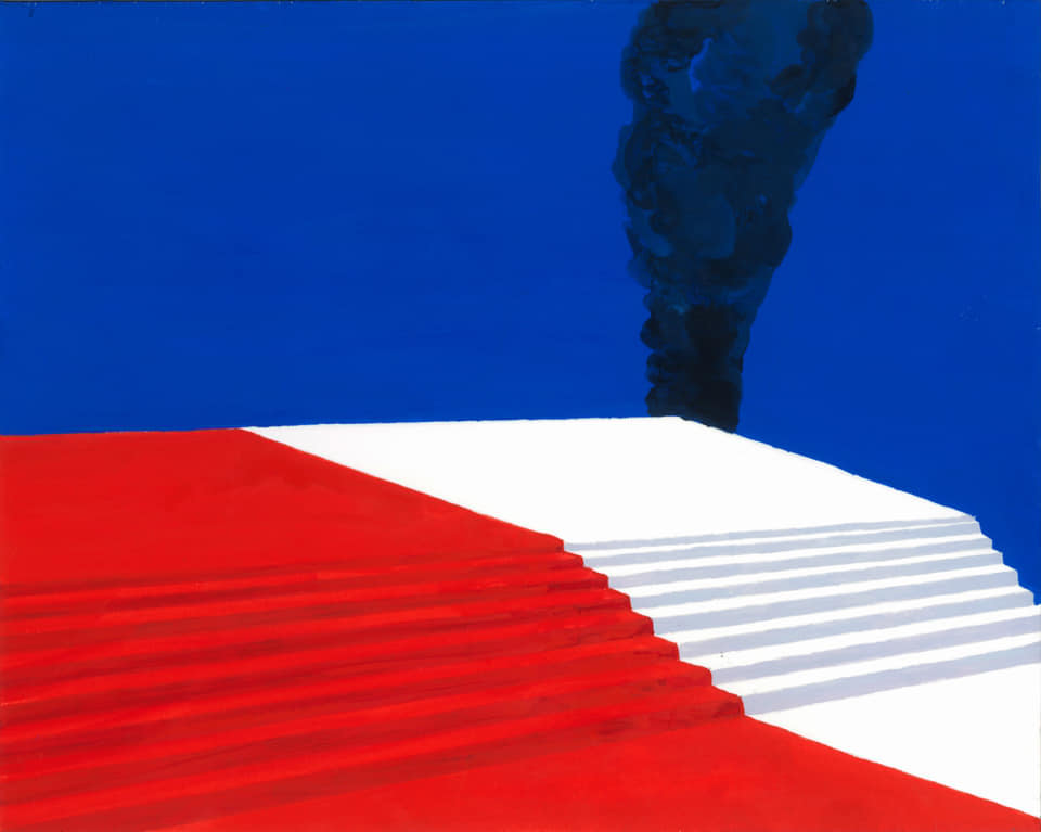 لوحاته معزولة عن سياقها المعتاد. العلم الامريكي الذي يحترق في لوحات فيكتور